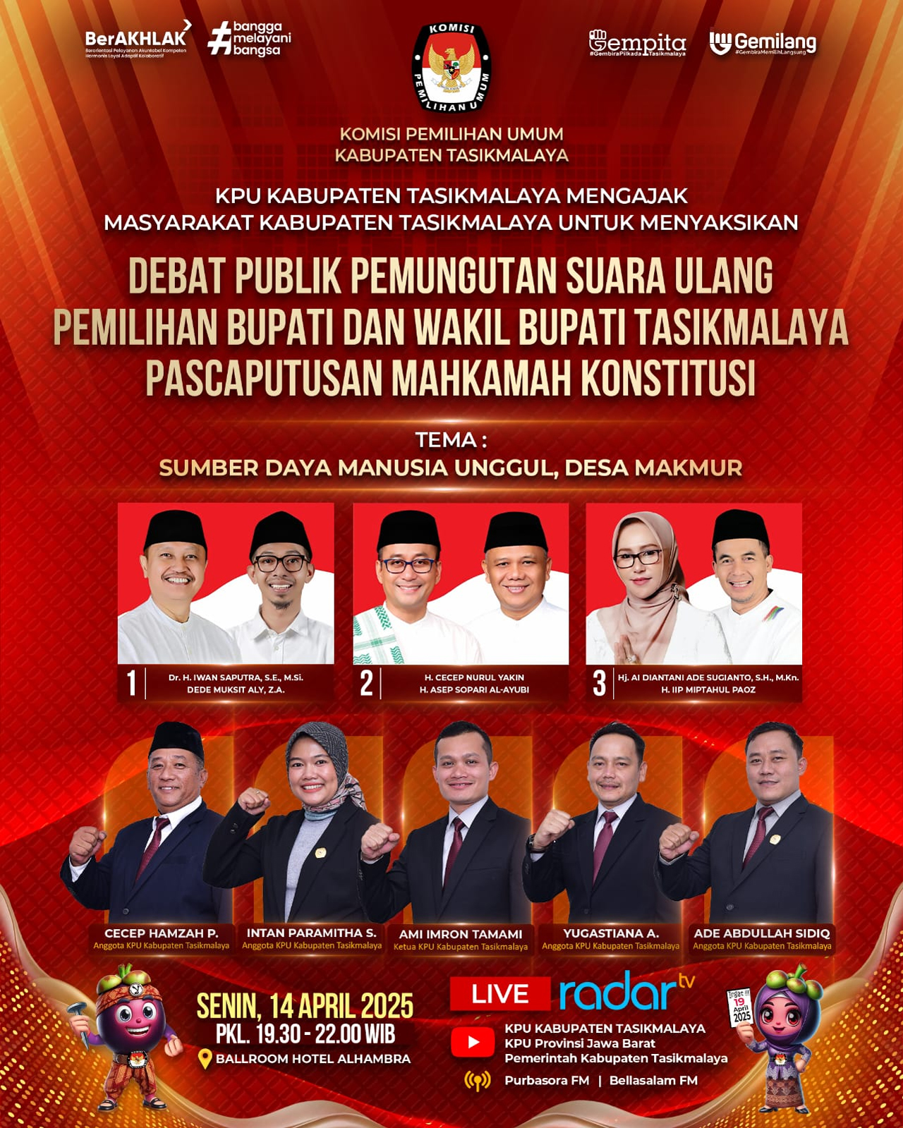 Saksikan debat terbuka pasangan Calon Bupati dan Wakil Bupati Tasikmalaya Live Radar TV malam ini.-Radartasik.com-