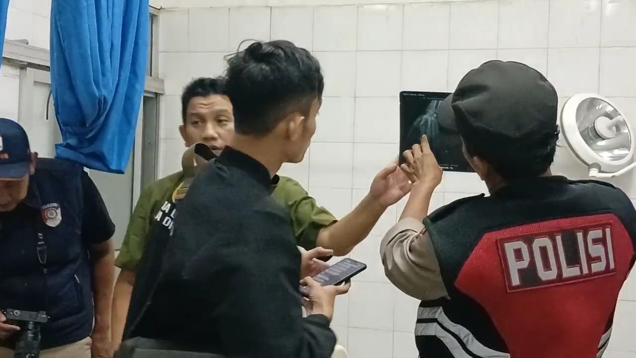 Polisi saat memeriksa kondisi korban pembacokan di RSUD dr Soekardjo Kota Tasikmalaya, Minggu 9 Februari 2025. istimewa--